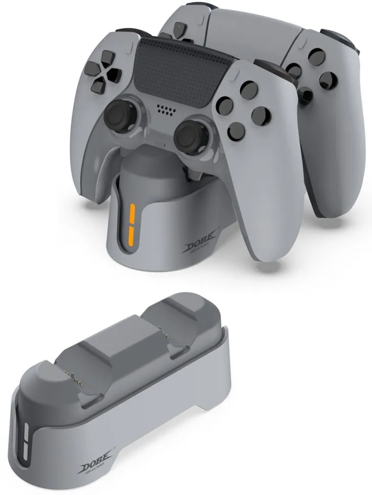 Зарядная станция для 2х геймпадов DualSense PS5 (Dobe TP5-1501X). Привлекательная подставка и компактный размер, это зарядное устройство, выполненное в приятном дизайне, обеспечивает стильный внешний вид и удобную практичную зарядную станцию для контроллеров DualSense. Сохраняет пространство развлечений аккуратным, организованным, а также соответствует всем аксессуарам PS5 эстетически.
